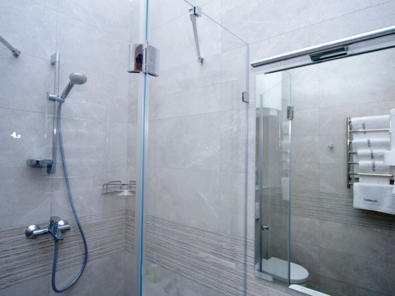 Сучасна ванна кімната: душова кабіна, фен.